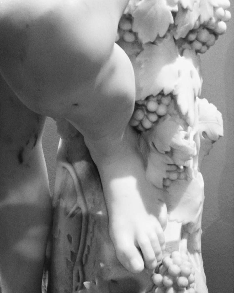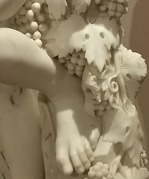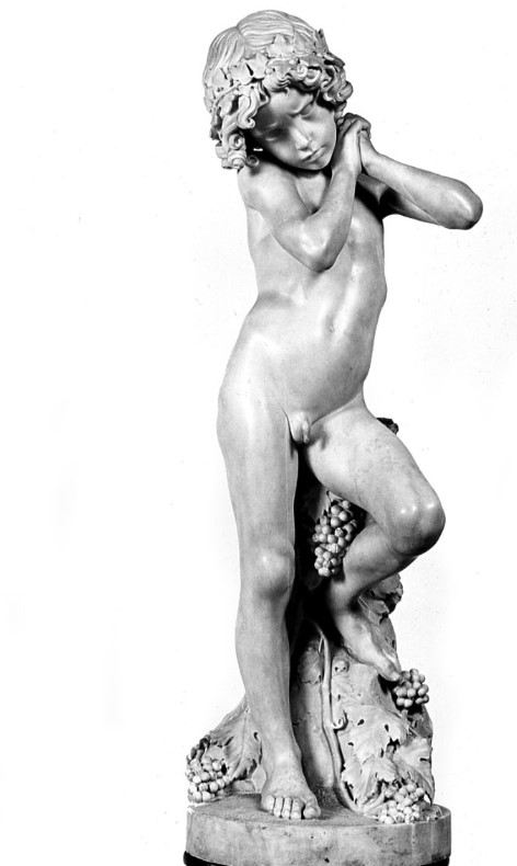 The sculptor, referring to classical antiquity but following the tastes of his own era, wanted to sculpt in marble this young Bacchus who looks sorrowfully at the fate of the grapes, affected by cryptogama.