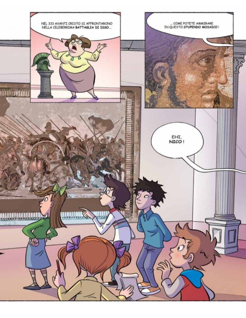 Il libro “Nico alla scoperta di Alessandro Magno” pubblicato dalla casa editrice Electa è direttamente collegato alla grande mostra che è stata allestita presso il MANN dedicata ad Alessandro Magno e si riallaccia alle suggestioni del prezioso Mosaico della Battaglia di Isso al momento in restauro.