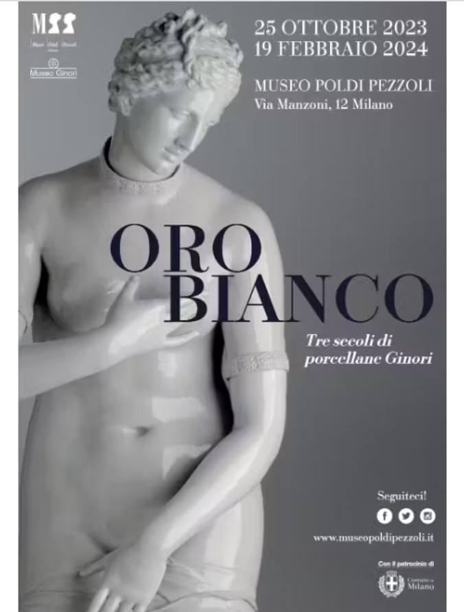 “Oro Bianco. Tre secoli di porcellane Ginori” è il titolo della mostra presentata oggi al Museo Poldi Pezzoli e che aprirà al pubblico a partire da domani 25 ottobre fino al 19 febbraio 2024 presso la sede museale di Via Manzoni a Milano.