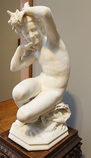 Fu allora che inviò in terra natìa quello che divenne uno dei primi capolavori: il Pescatore Napoeltano che ride malizioso mentre porta la conchiglia all’orecchio.