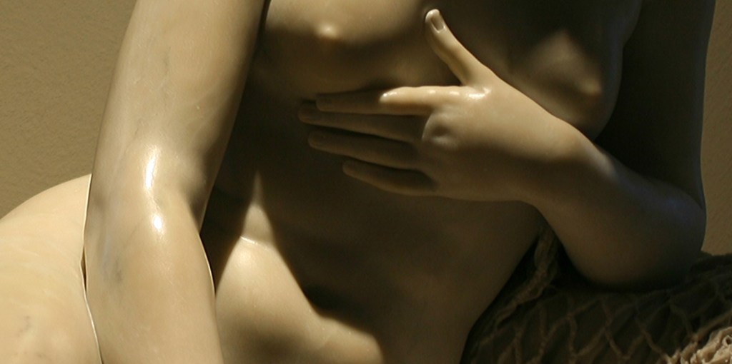 To sculpt this work, Marchesi referred directly to the model of Canova’s Venus victorious and it wasn’t even the first time. In fact, he studied the different possible interpretations of that masterpiece and drew works like this from it, such as his Maddalena and Venus Disarming Love.