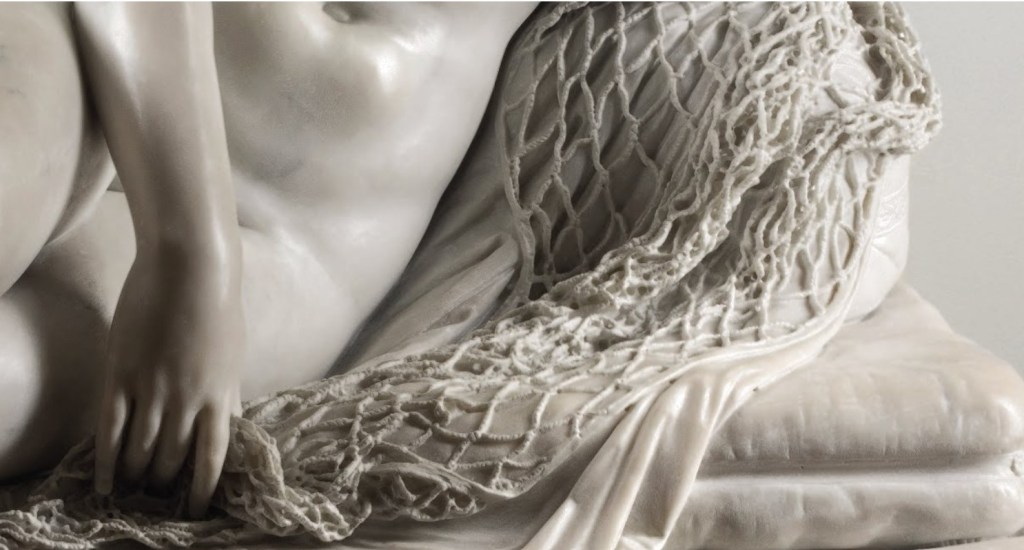 Also admirable is the rendering of the fishing net under her body, a clear allusion to the episode of the discovery of the betrayal with Mars by Vulcan, her husband.