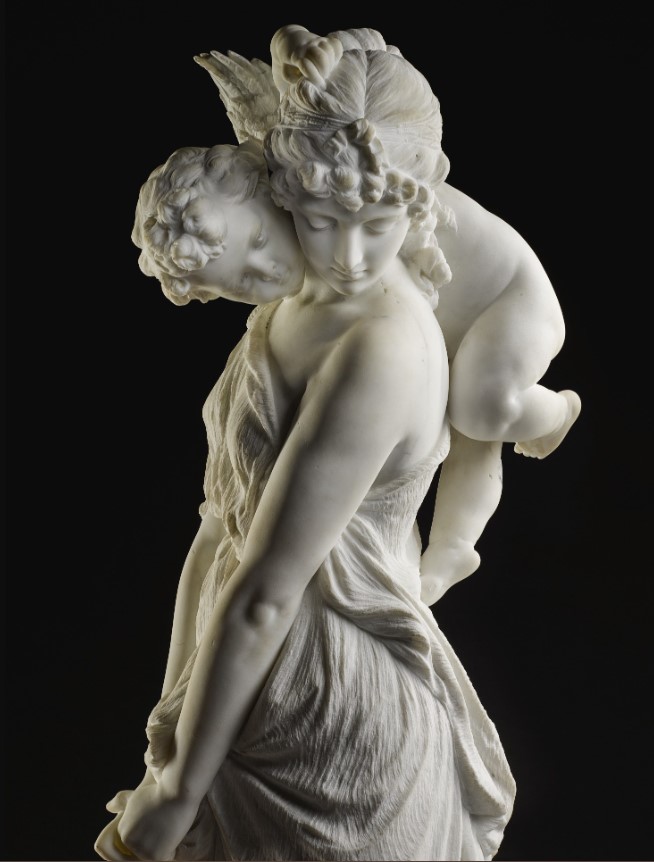 In this work, the treatment of the drapery that envelops the young woman and the refinement of her details, sculpted with skilful mastery by the artist, are sublime.