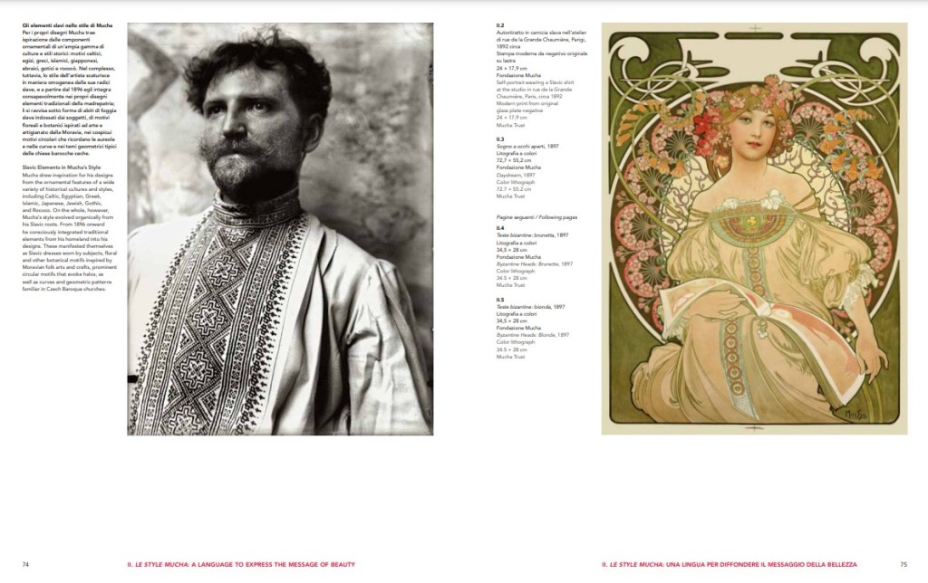 Nel catalogo edito da Skira con testi curati da Tomoko Sato in collaborazione di Francesca Villanti, non solo vengono riproposte le oltre 200 opere di Alphonse Mucha presenti al momento in mostra al Museo degli Innocenti ma è possibile immergersi letteralmente nel pensiero creativo che ha guidato la sua mano.