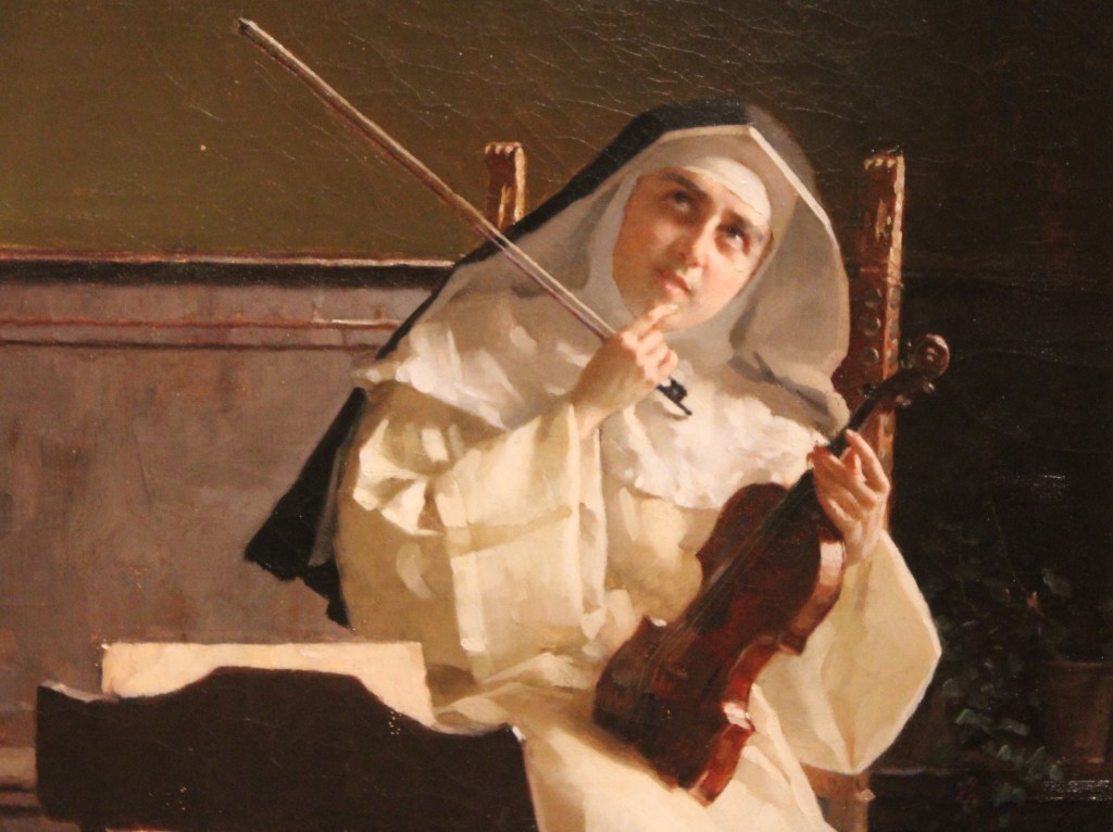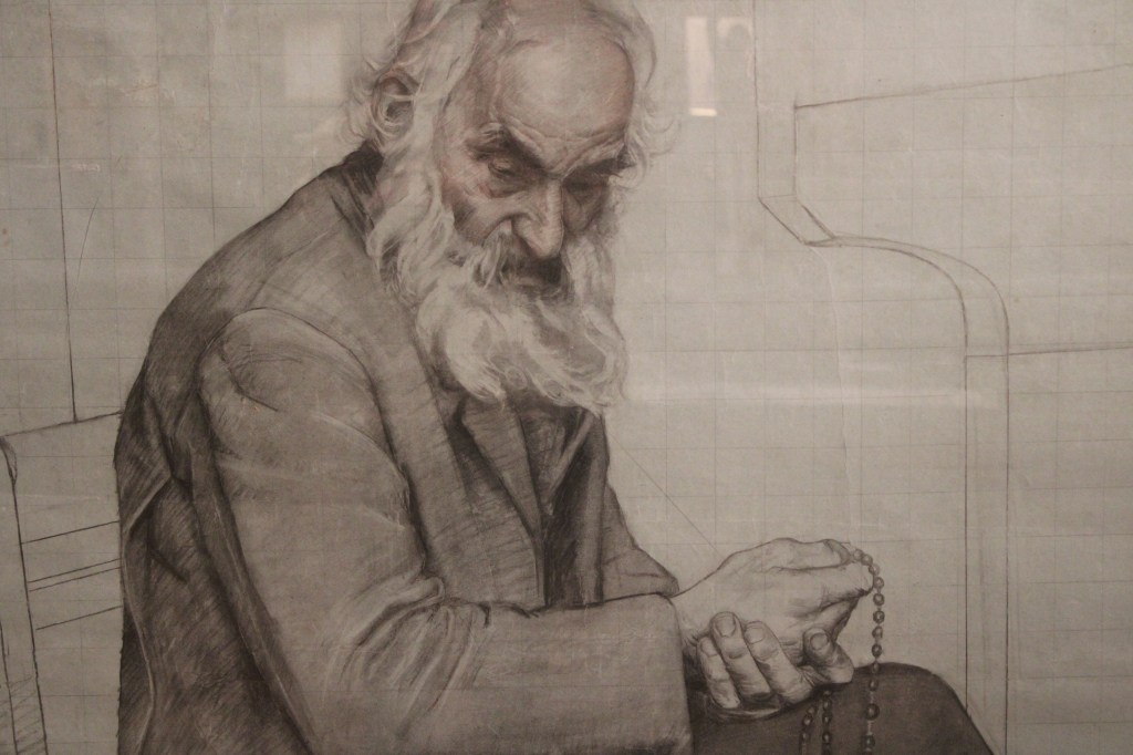 Among the works in the exhibition there are both little-known works and drawings and Simi’s greatest masterpieces such as the diptych of the parents, the evening prayer, Self-portrait at the easel, Little fishermen, Reverie, Hedwig, Old man with the rosary by the fireplace, Girl with the cat and the almost unpublished work of the Nun with the violin which personally impressed me greatly.