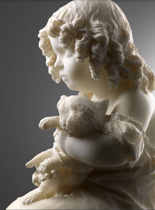 The Sculpture of the Day that I propose to you today is the Wounded Friend sculpted by Antonio Tantardini in 1876. There are two versions of this work: the first is a little girl holding a kitten with a bandaged paw in her arms while in the second the wounded puppy he’s a little dog.