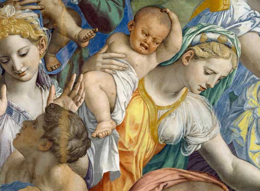 Agnolo di Cosimo, as Bronzino was called, had been born 69 years earlier in Monticelli, a town not far from Florence. He had learned the first rudiments of workshop painting from Raffaellino del Garbo and a few years later he became a promising pupil of Pontormo, starting to working for him at the age of fourteen, between 1517 and 1518.