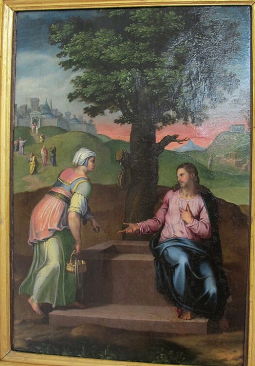 Cristo e la Samaritana al pozzo è uno dei miei che si è perduto nella notte dei tempi, citato dal Vasari ma non dal Condivi. Studiai la composizione a lungo prima di trasferirla su tela o tavola per farne poi dono alla mia amica Vittoria Colonna.