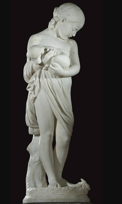 La scultura del giorno che vi propongo oggi è la Ragazza che protegge il suo cucciolo dal serpente, opera ottocentesca scolpita da Odoardo Fantacchiotti.