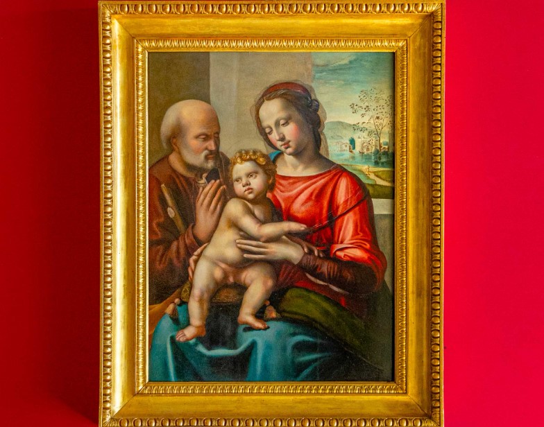 The long-lasting misunderstanding of the attribution was caused above all by the existence of a letter dating back to 1847 in which mention is made of a Holy Family by Perino donated to the Municipality of Monterotondo by Prince Boncompagni-Ludovisi.