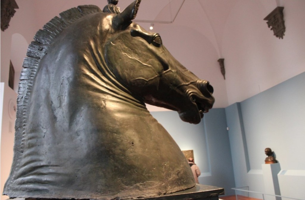 The head created by Donatello is full of incredible details. The artist was able to model the tufts of the quadruped’s mane one by one, making them almost alive and with every fold of the neck or vein that runs under the skin.