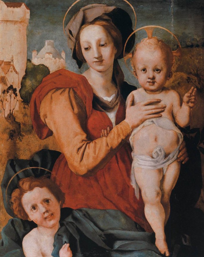 In 1518, the standard bearer of justice and trusted man of the doctors Francesco di Giovanni Pucci had Pontormo paint a large oil panel for the church of San Michele Visdomini in Florence. The work is still in its original location today and was much appreciated by Vasari. According to him it was the most beautiful painting that this very rare painter had ever done.
