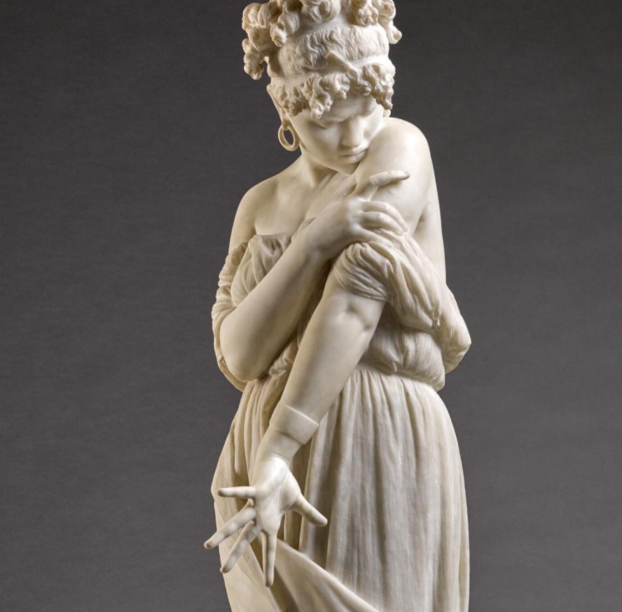 Il soggetto esotico era perfetto per l’artist che, seguendo la moda orientalista del suo tempo, non esitò nel sceglierlo per scolpirlo con la sua maestria. La fronte corrugata della giovane, le dita allargate e quell’abito che lascia scoperte le spalle mettono in evidenza le origini orientali della giovane e il suo disappunto per ciò che era appena accaduto.