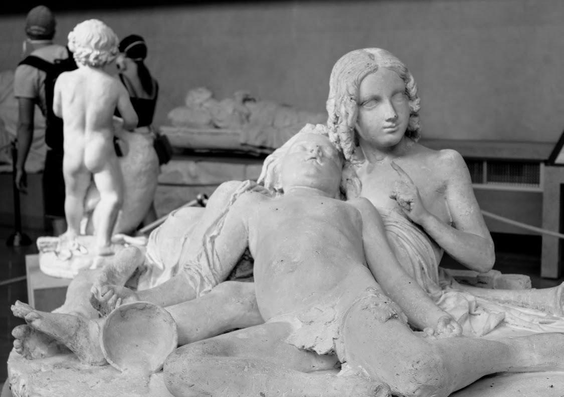 The three young protagonists, sculpted in life-size, although their facial features are very idealised, give those who observe them the sensation of being real children, turned to stone by the touch of Medusa.