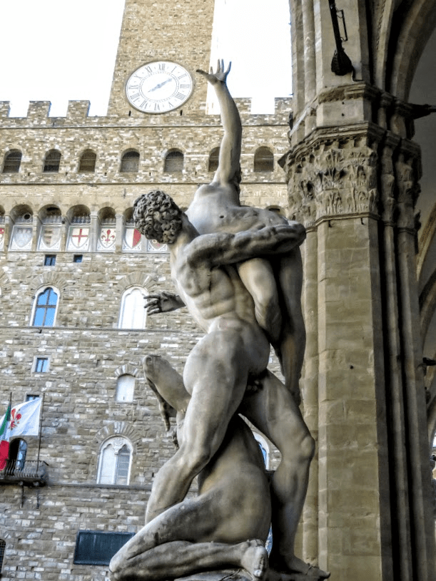 It was January 14, 1583 when the stupendous work by Giambologna which has decorated the Loggia dei Lanzi for centuries was inaugurated with great fanfare: the Rape of the Sabine Women.