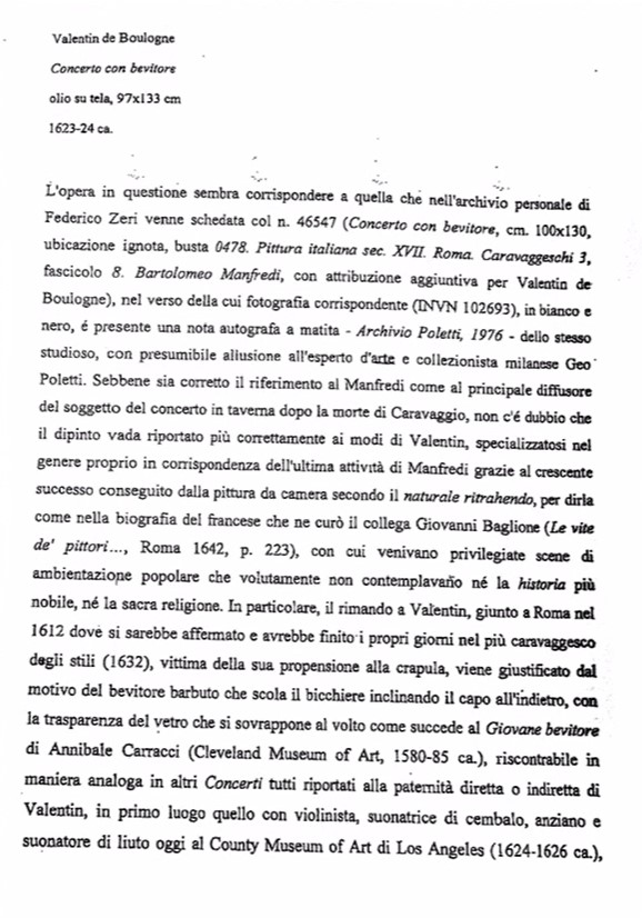 In January of this year, speaking on the program Report, Undersecretary Sgarbi denied that he had himself attributed the work in question to Valentin de Boulogne some time before. A document shown by the same broadcast, sent by Sgarbi’s secretariat to Gianni Filippini, blatantly denies it.