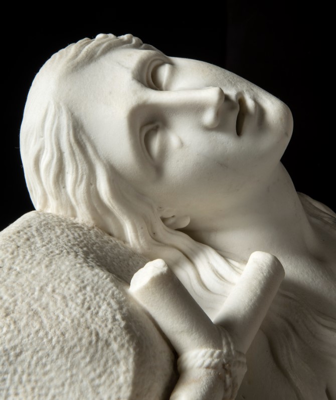The gaze lost in the void of Canova’s reclining Magdalene as well as her head reclining backwards immediately bring to mind the Ecstasy of the Blessed Ludovica Albertoni that Gian Lorenzo Bernini had sculpted in Rome, for the church of San Francesco a Ripa, in 1674.