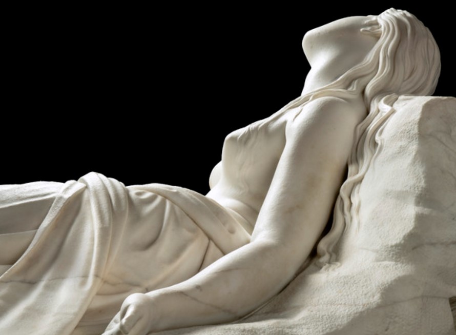 La scultura del giorno è la Maddalena giacente scolpita da Antonio Canova fra il 1819 e il 1822, anno della sua morte.