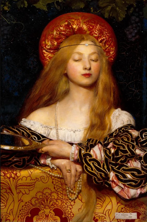 Il dipinto del giorno che voglio proporvi oggi è Vanità, un dipinto a olio su tavola realizzato nel 1907 da Frank Cadogan Cowper, l’ultimo dei Preraffaelliti e presto in mostra a Forlì.