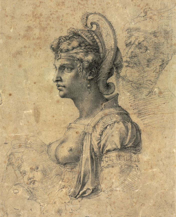 I created the drawing of the bust of Zenobia, with that elaborate headdress and exposed breasts, as a gift to Gherardo Perini in 1525 and today it is kept in the Uffizi collection.