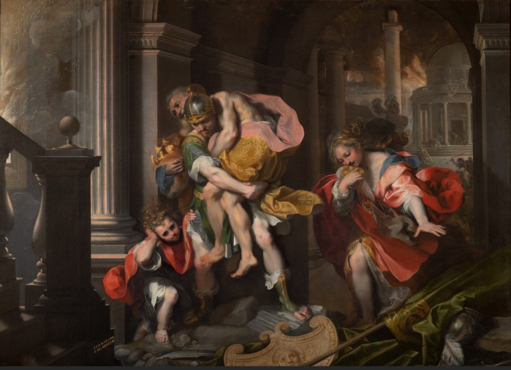Nella quinta sala sarà possibile ammirare le composizioni dalla loro fase preparatoria all’opera finita, saranno presenti l’Annunciazione conservata in Vaticano, esposta vicino a diversi fogli elaborati per la sua realizzazione, la straordinaria Fuga di Enea da Troia (Roma, Galleria Borghese), affiancata al cartone preparatorio conservato al Louvre, l’unica opera a tema mitologico di Barocci, in cui gli elementi ereditati dalla tradizione raffaellesca sono riletti con un nuovo pathos che ispira il ragionamento che sul dipinto fece Bernini e infine la Deposizione di Senigallia, che dal 1608 – anno della fine dell’intervento di ‘restauro’ operato dallo stesso Barocci – torna a Urbino, con accanto il suo bozzetto preparatorio conservato al museo.