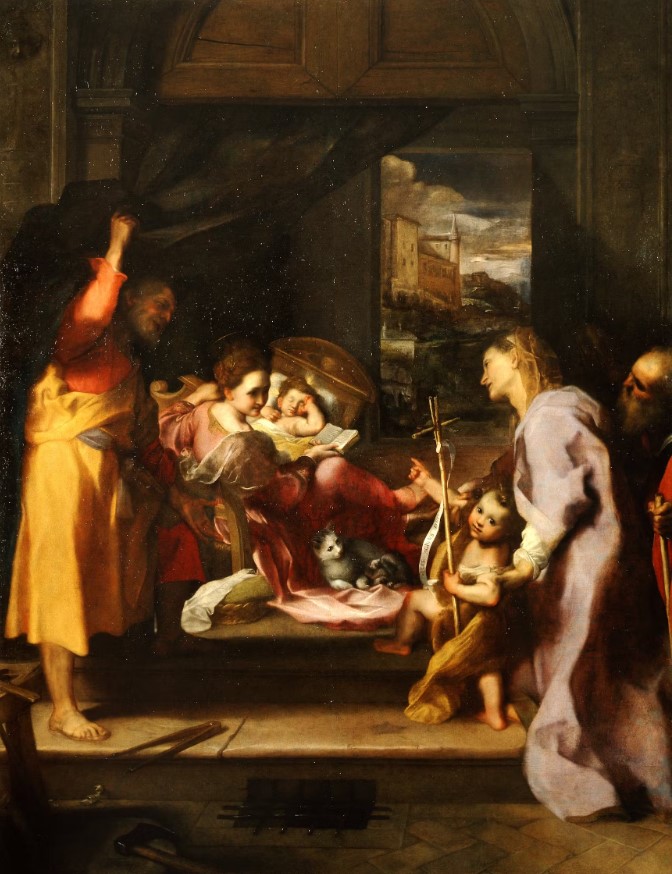 Here the magnificent Christ Appears to the Magdalene (Florence, Uffizi) will be presented, in which the profile of Urbino brings the sacred scene into the familiar context of the Feltre capital, the Madonna delle Ciliegie (Vatican Art Gallery), where the sweet spring landscape welcomes the representation of family love, the Holy Family of the cat (National Gallery of London), in which the protagonists are represented in a room that recalls the rooms of the Urbino palace, the Madonna of San Giovanni (National Gallery of Marche), painted after the return from Rome as a votive offering for healing, the Nativity (Museo del Prado in Madrid) and the magnificent San Girolamo penitent and San Francesco, respectively from the Borghese Gallery and the Metropolitan in New York, in which characters appear ecstatic in a poignant landscape.