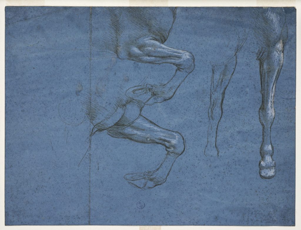 Importanza e rilievo continuano ad avere gli studi sui cavalli, sia in relazione all’anatomia di quello che lo stesso Leonardo considerava il più nobile tra gli animali, sia in rapporto ai progetti di statue equestri per Francesco Sforza e Gian Giacomo Trivulzio, mai realizzati.