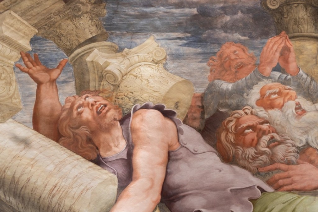 La metamorfosi, intesa come una interrogazione fondamentale sull’essenza della natura e sul senso dell’umanità, si presenta infatti come una linea narrativa al tempo stesso profonda e scherzosa, ironica e vertiginosa, sempre centrale, del progetto artistico di Giulio Romano a Palazzo Te.