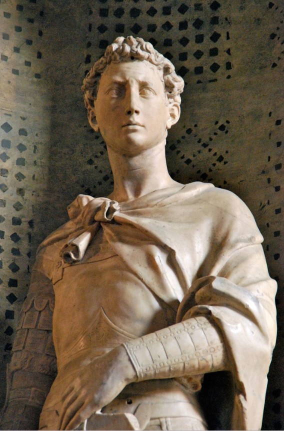 “Una figura di San Giorgio armato vivissima e fierissima, nella testa della quale si conosce la bellezza nella gioventù, l’animo et il valore delle armi, una vivacità fieramente terribile et un meraviglioso gesto di muoversi dentro a quel sasso”, così descrisse l’opera Giorgio Vasari.