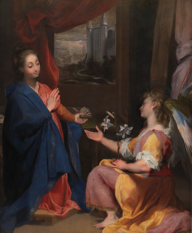 In 1570 Duke Guidobaldo commissioned him the famous work of the Rest of the Flight into Egypt also known as Madonna delle Ciliege, today kept in the Pinacoteca of the Vatican Museums. After two years he was commissioned to portray the young prince Francesco Maria to celebrate his return from the battle of Lepanto: this meeting gave rise to both a professional and personal relationship between the Artist and Francesco Maria that would continue for the rest of their days.