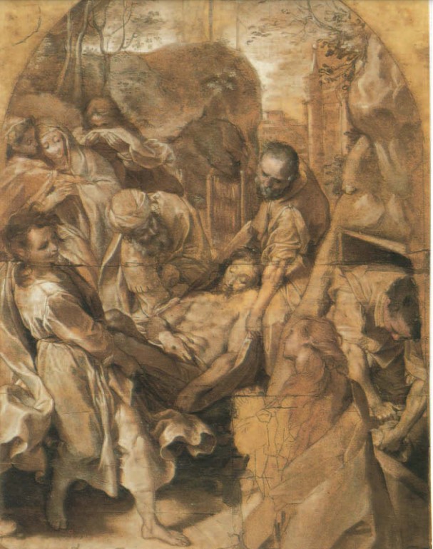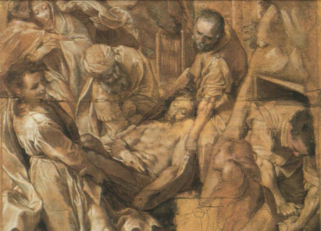 Nel disegno si nota l’incompiutezza della Maddalena inginocchiata in primo piano a destra.