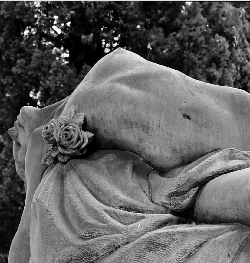 Pietro da Verona gave shape to the sculpture that decorates the Burlando Tomb in 1920. The now lifeless body of the young woman is laid on a finely crafted drapery while a flap modestly covers her pubis.