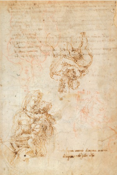 The sheet in question belongs to the collections of the British Museum and includes two pen and ink studies on the recto with slightly crossed parallel hatchings. In both of the more marked figures we notice that the light that illuminates them comes from the left.