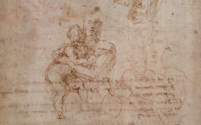 The sheet in question belongs to the collections of the British Museum and includes two pen and ink studies on the recto with slightly crossed parallel hatchings. In both of the more marked figures we notice that the light that illuminates them comes from the left.