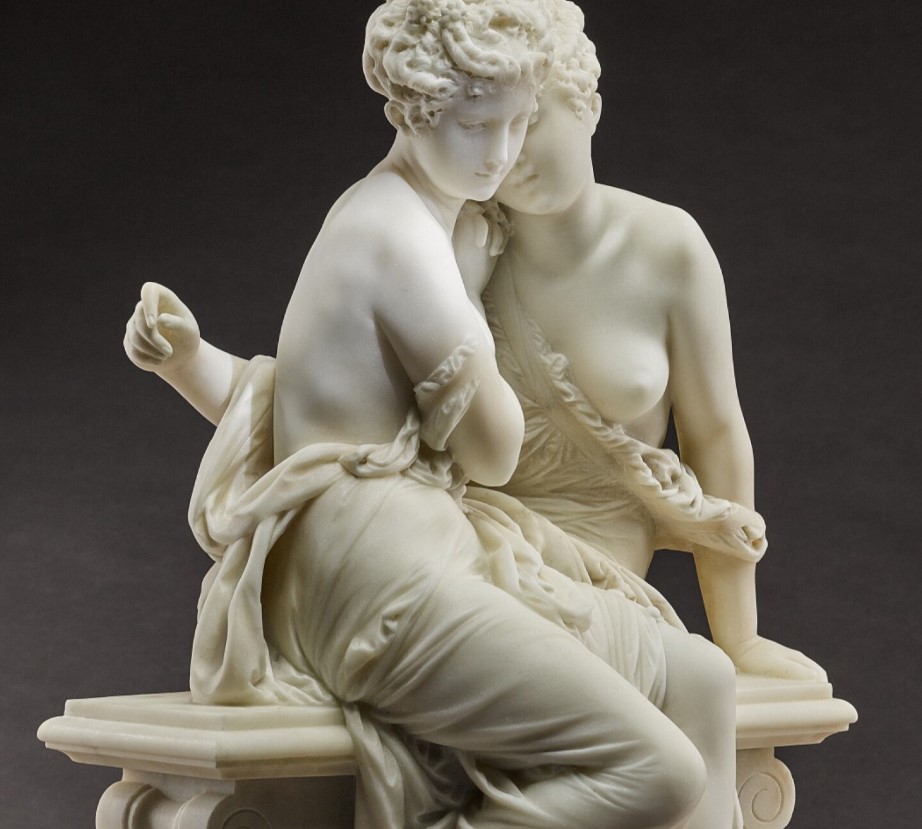 The sculpture of the day that I propose to you today is the Secret by Albert-Ernest Carrier-Belleuse, sculpted in Carrara statuary marble in the mid-nineteenth century.