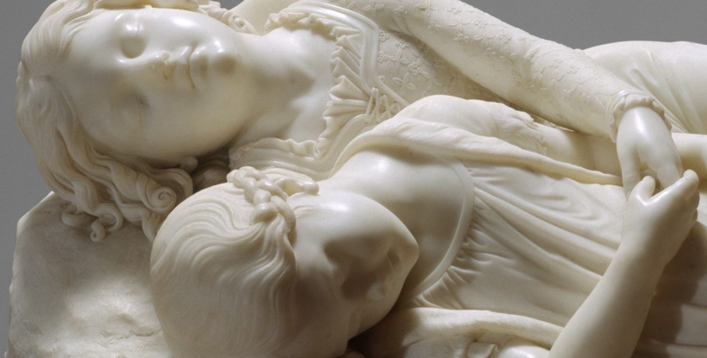 La scultura del giorno che vi propongo oggi sono i Bambini nel bosco scolpiti da Thomas Crawford nel 1851. Un’opera struggente che riesce a far vibrare le corde più profonde dell’animo.