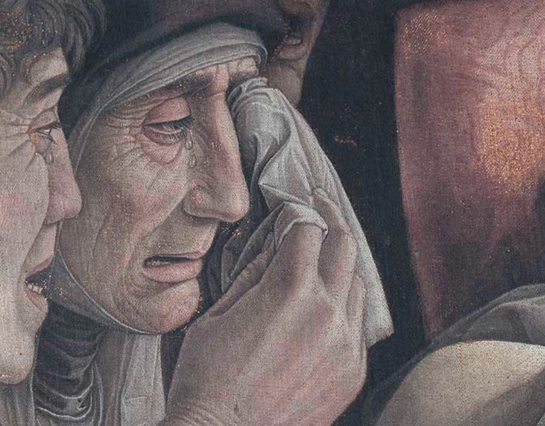 Mantegna probably created the work to decorate his own funerary chapel. In fact, the painting was found by his children in the workshop after his death and they sold it to Cardinal Sigismondo Gonzaga. They had debts to repay and thought of selling that masterpiece to be able to pay at least part of that money owed.