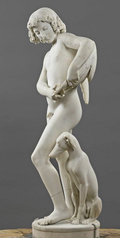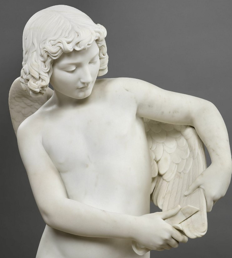The sculpture of the day that I propose to you today is an unusual Love cutting its wings, a work in Carrara marble created by the French artist Jean-Marie Bonnassieux Benaimé, in 1841.