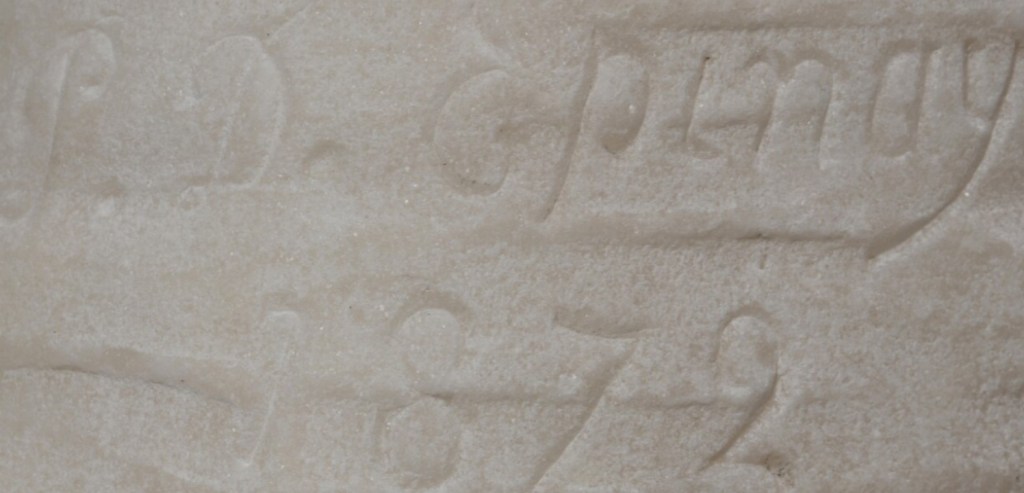The Bather sculpture depicts a young Greek girl undressing next to a fountain and the artist wanted to place her signature and the date of execution, 1872, on the base.