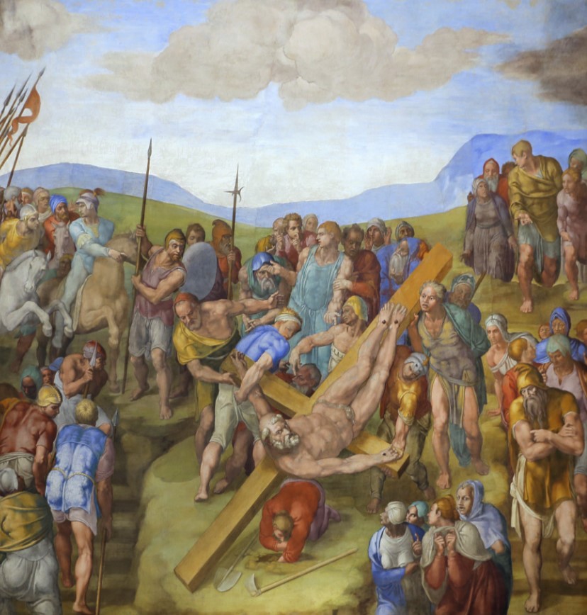 There are also those who have been able to see in the face of Saint Peter that of Pope Paul III, with his pointed nose, white beard and proud gaze capable of penetrating the soul of those who observe him.