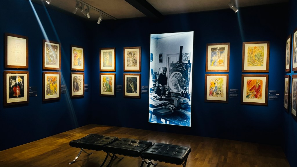 That was the danger that forced Chagal to flee Paris and then find asylum in the United States. Through twenty-four scenes. the painter wanted to represent the adventure of the Jewish people who, with the help of God and the guidance of Moses, escaped from slavery in Egypt to reach the Promised Land.