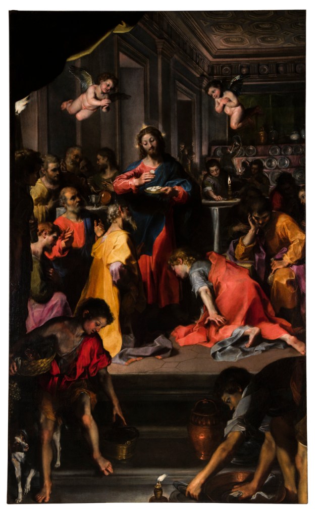 Pope Clement VIII Aldobrandini was fascinated by seeing those two works by Barocci, so much so that at the end of 1603 he wanted to commission him for the Institution of the Eucharist intended to enrich the family chapel built according to Maderno’s design in Santa Maria sopra Minerva.