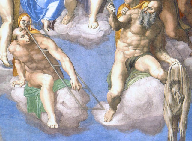 Before starting the fresco days to create the San Lorenzo with the grill in the Last Judgment, I carefully studied the pose and musculature of the Saint.