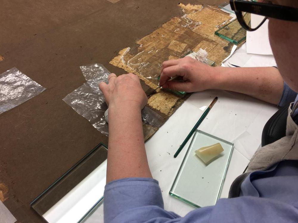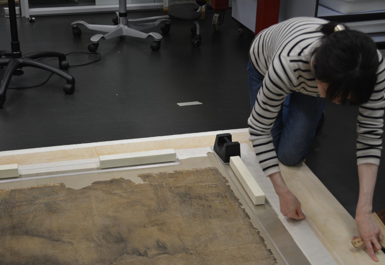 Per rimuovere fisicamente la carta marrone di supporto, i restauratori hanno impiegato sette mesi di lavoro adoperando pinzette, spatole e bisturi.
