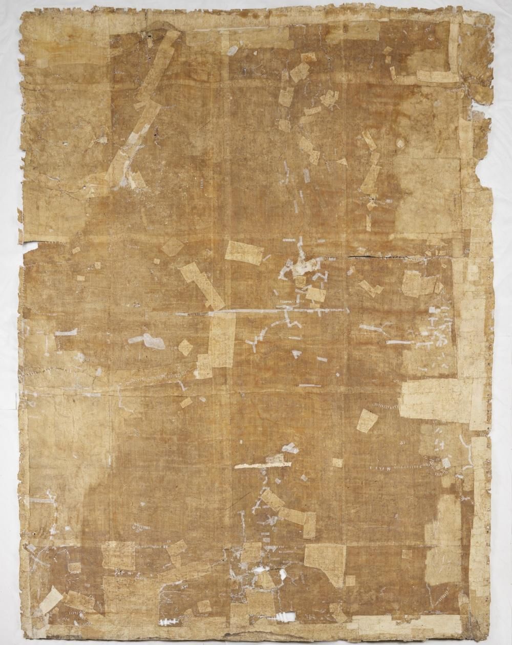 It is made up of twenty-six sheets of paper made of cotton, hemp and linen. The edges of the sheets were first overlapped and then glued together with flour glue to create a cardboard measuring 2.32 by 1.65 metres.