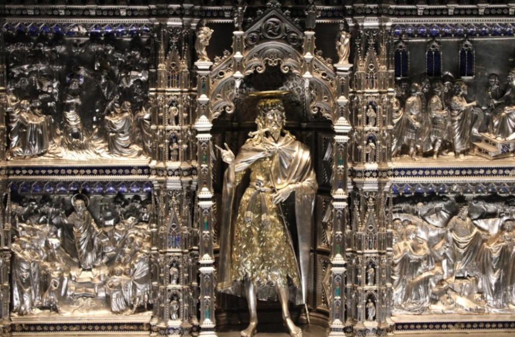 Originally the masterpiece in silver, enamel and gold dedicated to Saint John, patron saint of Florence, decorated the main altar of the baptistery but was subsequently removed and shown to the faithful only twice a year: on 13 January for the Baptism of Christ and on June 24th, on the occasion of San Giovanni.
