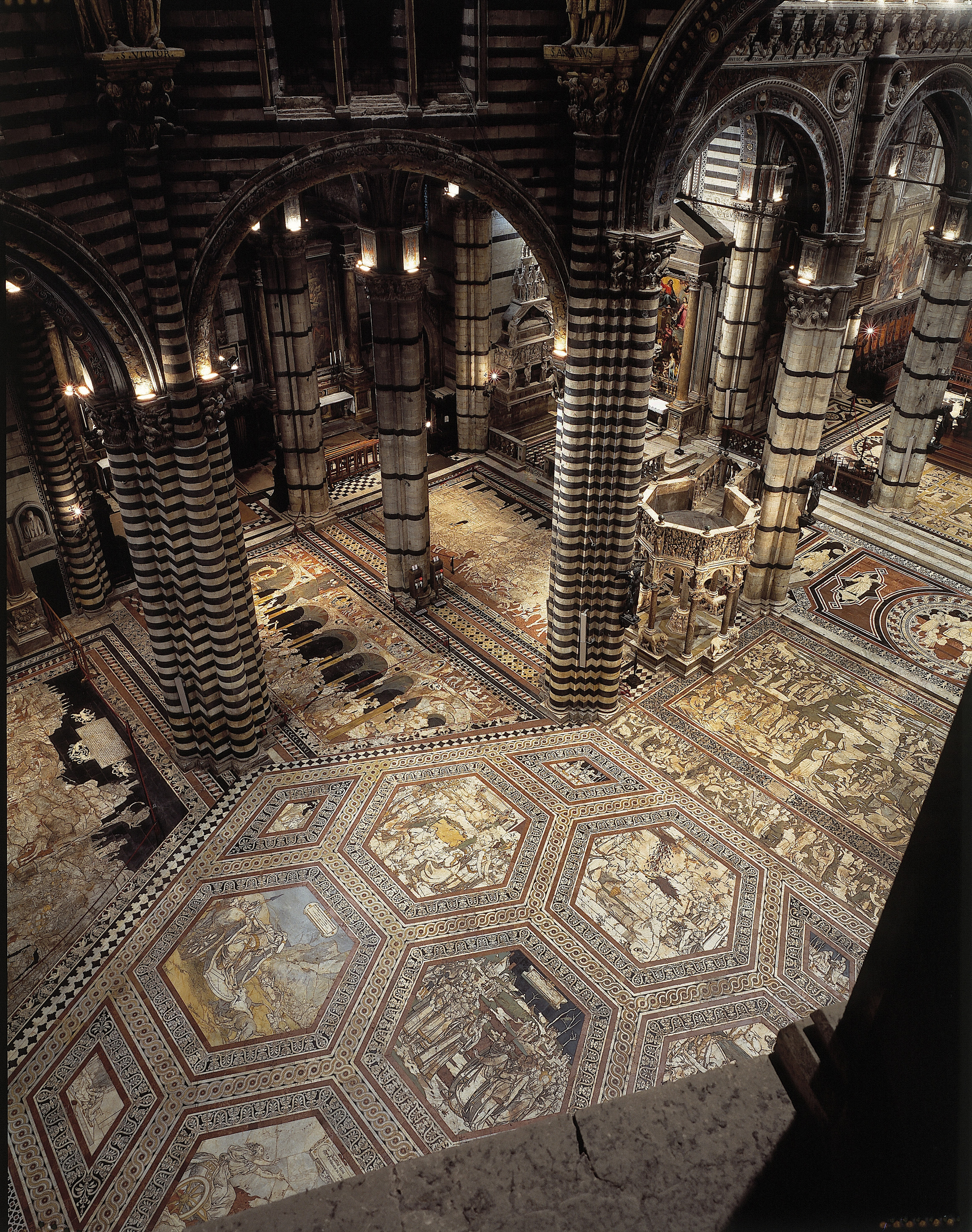 Sarà possibile dunque apprezzare da vicino le incredibili tarsie, realizzate su cartoni preparatori di artisti come il Sassetta, Domenico di Bartolo, Matteo di Giovanni, Domenico Beccafumi e il Pinturicchio.