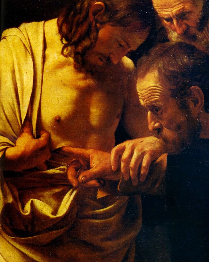 “Otto giorni dopo Gesù apparve di nuovo agli apostoli e visto fra di loro Tommaso gli disse:” Metti qui il tuo dito e guarda le mie mani; tendi la tua mano e mettila nel mio fianco; e non essere incredulo, ma credente!” (Gv. 20,19-31 ).