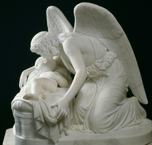 The Whisper of the Angel is a sculpture inspired by a poem by Samuel Lover, which tells of an old Irish belief according to which when a child smiles in his sleep it is because he is talking to an angel.