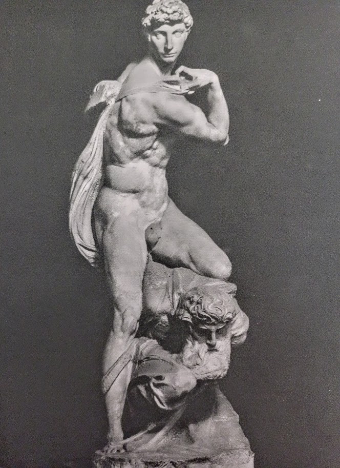 The David instead was decorated with a fig leaf when I was still alive, after I left for Rome permanently in September 1534. There is an explicit trace of this censorship in a letter that Pietro Aretino wrote to me. At the moment in which he lashed out against the Last Judgement in fact for not having obtained any drawing from me as repeatedly requested, he informed me that the leaf had been placed on the David to cover the sex.